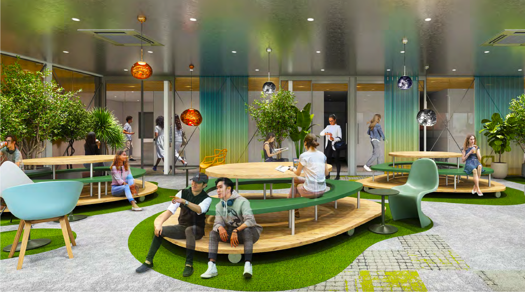 エントランスからガラス越しに見ることができ、FINDER BASEのクリエイティビティと自由を象徴する場となります。